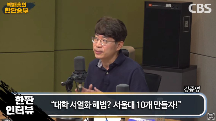 ◇ 박재홍> CBS 라디오 <박재홍의 한판승부> 2부 함께하고 계십니다. 윤석열 정부가 강조한 3대 개혁 중 하나가 바로 교육 개혁입니다. 그리고 최근에는 대통령이 수능 킬러문항 문제를 언급하면서 사교육 시장에도 지금 세무조사도 등장하는 여러 가지 혼란이 있는 상황이기도 하죠. 그래서 이 교육 개혁의 일환으로 해소돼야 한다. 그리고 이러한 입시 문제 근본적 해결책은 어떤 대학의 구조를 바꿔야 하는 것이고 그 가운데 서울대 10개 만들기를 제안하는 것이 근본적 해결책이다라고 말씀하시는 분이 계셔서 오늘 저희가 스튜디오에 모셨습니다. 경희대학교 김종영 교수를 모셨습니다. 어서 오십시오, 교수님.