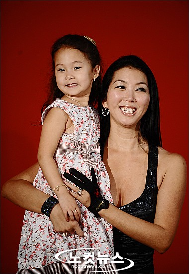 세계적인 당구 선수 독거미 자넷리의 스타화보 현장공개가 15일 오후 강남구 역삼동의 한 스튜디오에서 진행된 가운데 자넷리가 딸 샤이엔과 함께 포즈를 취하고 있다.