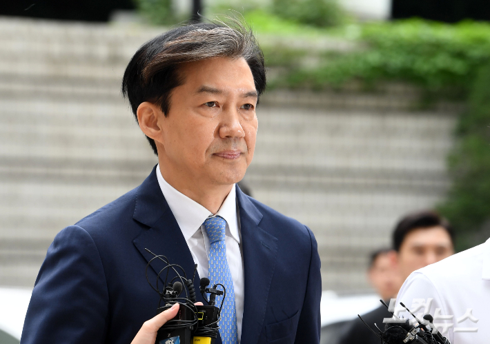 자녀 입시비리와 감찰 무마 등 혐의로 1심에서 징역 2년을 선고받은 조국 전 법무부 장관이 17일 오후 서울 서초구 서울고등법원에서 열린 첫 항소심 재판에 출석하고 있다. 조 전 장관은 항소심 첫 공판에 출석하며 "정경심 교수의 유죄가 대법원에서 확정된 이후 당사자와 가족들은 이를 겸허히 받아들이고 스스로를 돌아보고 있다"고 밝혔다. 황진환 기자