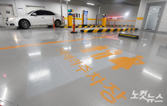 서울시는 18일 '여성우선주차장' 주차구획을 '가족배려주차장' 주차구획으로 전환하는 '주차장 설치 및 관리조례 일부개정조례'를 공포·시행한다. 조례가 개정되면서 기존 여성우선주차장은 가족배려주차장으로 명칭이 바뀌고, 이용대상도 기존 여성에서 임산부나 고령으로 이동이 불편한 사람, 영유아를 동반한 운전자로 확대된다. 사진은 18일 오전 서울시내 한 주차장에 마련된 가족배려주차장 모습. 황진환 기자