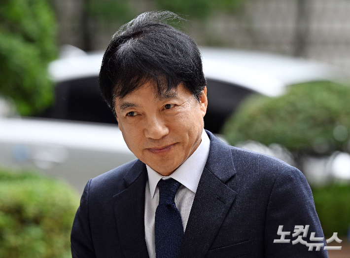 김학의 전 법무부 차관의 불법 출국금지' 의혹 수사를 방해한 혐의로 1심에서 무죄를 선고받은 이성윤 법무연수원 연구위원이 18일 오후 서울 서초구 서울고등법원에서 열린 항소심 첫 재판에 출석하고 있다. 이 연구위원은 항소심에 앞서 "검찰의 노골적인 봐주기 수사는 검찰의 존재 자체를 형용 모순으로 만들었다"고 주장했다. 황진환 기자