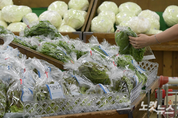 호우 피해로 채소류 가격이 급등하고 있는 가운데 20일 오후 소비자들이 서울 서초구 농협 하나로마트 양재점 채소 코너를 살펴보고 있다. 과거에도 통상 호우피해가 발생하면 각종 채소와 과일류 가격이 급등했었는데 올해는 피해규모가 과거보다 더 커 물가 불안이 크게 우려된다. 박종민 기자