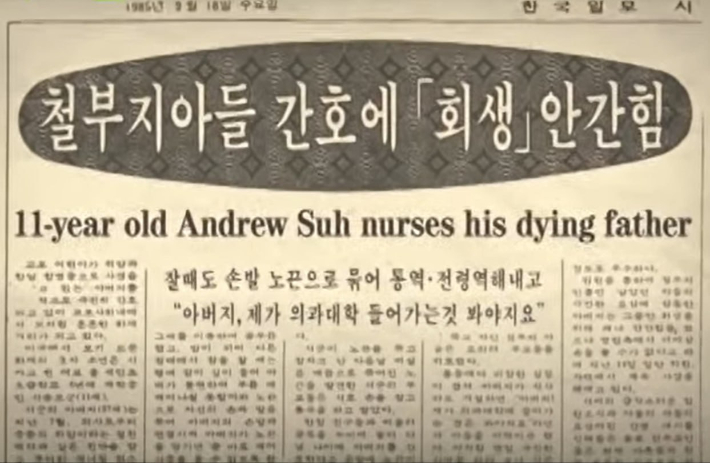 ◆ 손수호> 그렇습니다. 누나는 또 그러다 보니까 더 계속 겉돌았는데요. 반면 앤드류는 모범생으로 컸습니다. 새벽부터 아버지와 함께 가게에 드릴 물건 사러 가고 학교 끝나고 오면 가게도 같이 보고 어릴 때부터 부모의 통역사 겸 말동무 역할까지 했는데 그러다가 안타깝게도 앤드류가 11살 때 아버지가 암에 걸렸습니다. 그런데 이 당시 앤드류가 얼마나 극진히 아버지를 간호했는지 지역신문에 기사가 나왔어요.