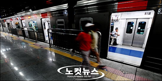 철도노조가 오후 1시를 기해 준법투쟁에 돌입한 23일 오후 서울 용산역 플랫폼에서 승객들이 열차 출발을 기다리고 있다.