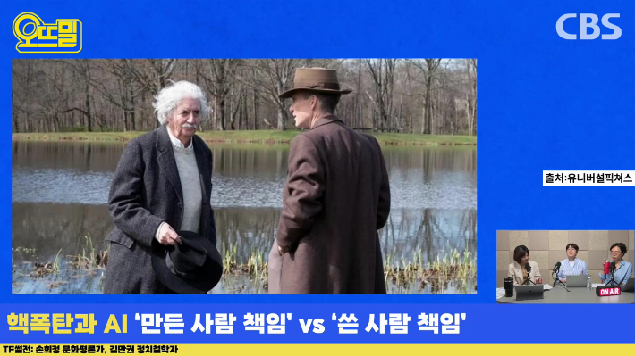 ◇ 채선아> 오늘 '오펜하이머' 영화를 보다가 드는 생각들, 그리고 현실에서 한 번쯤 생각해 볼 수 있는 지점들을 짚어볼 수 있어서 좋았습니다. 두 분, 고맙습니다.