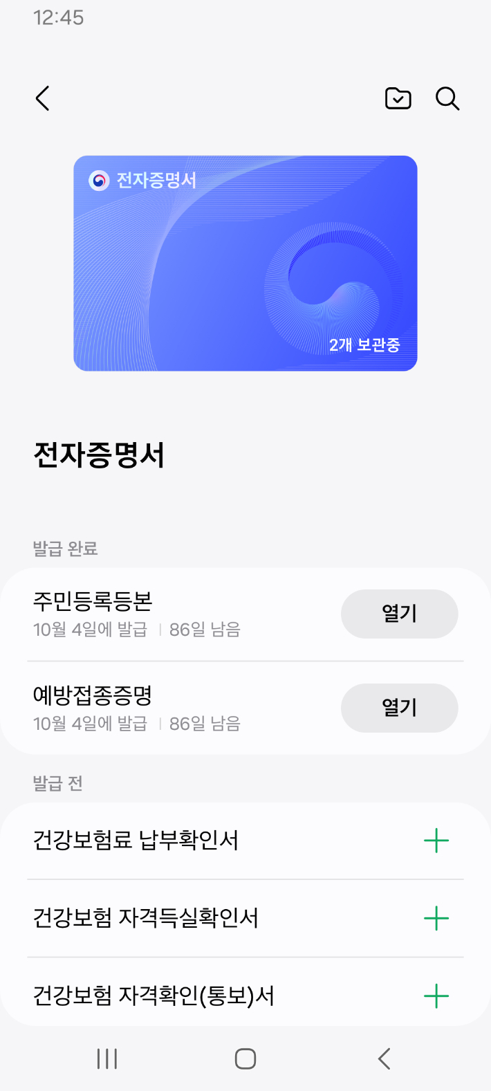 전자정부 서비스 '정부24'에서 발급하는 주민등록표등본과 건강보험료 납부확인서, 건강보험자격득실확신서, 소득금액증명, 사업자등록증 등 전자증명서 11종을 삼성페이에서 △발급 △조회 △공유 △제출 등이 가능하다.
