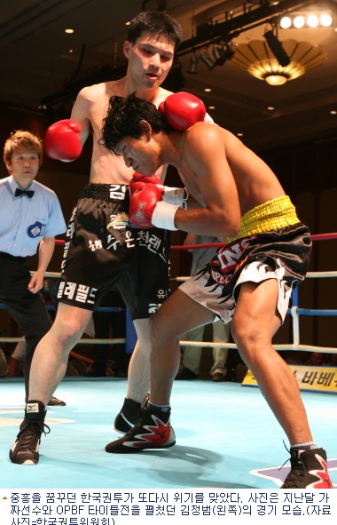 오는 11월 WBC(세계권투평의회) 총회 개최로 중흥을 맞는가 싶었던 한국 권투가 위기에 빠졌다. 프로복싱은 가짜 선수와 경기를 치르는 해프닝이 벌어졌고 아마권투는 세계선수권대회에 출전 거부를 당할 처지다.