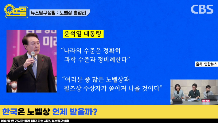 ◇ 채선아> 정부가 아니면 기초연구에 누가 투자하겠어요. 여기까지 노벨상 주간을 맞아서 노벨상에 얽힌 이런저런 얘기들을 탐구해 봤습니다. 조석영 PD 신혜림 PD 수고하셨습니다.