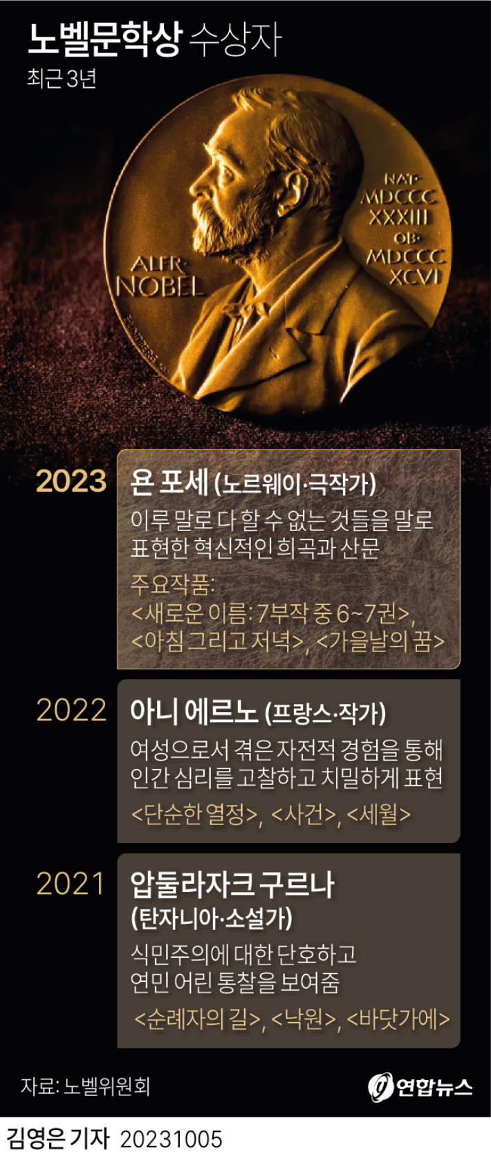 ◆ 조석영> 노벨이 이 기사를 보고 '사람들이 나를 죽음의 상인으로 기억하겠네'라는 생각이 들었을 거잖아요. 그러다 보니까 인류에 기여한 사람들을 기리기 위한 상을 제정해라, 이렇게 유언을 바꿨다고 합니다.