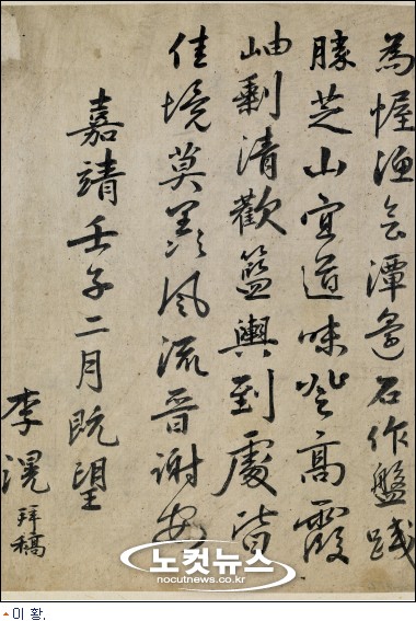 <근묵>은 위창(葦滄) 오세창(吳世昌, 1864~1953) 선생이 모아서 엮은 조선시대의 글씨첩이다. 선인들의 묵적(墨蹟) 중에서 서간류의 소품(小品)을 오랜 세월에 걸쳐 모아서 34첩의 첩장본(帖裝本)으로 만들었다.