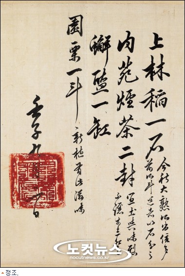 친척에게 물품을 하사한 정조임금의 물목(智188)은 매우 특이하다. 이때 하사한 것으로 벼 한 석, 담배 두 봉, 게장 한 항아리, 밤 한 말이다. 1792년에 상림(上林)에서 재배한 벼가 소출이 많아 예전에 말로 보내던 것을 지금은 석으로 보낸다 하였고, 내원(內苑)에서 재배한 담배가 토양이 적합하여 맛이 좋아 평안도 삼등(三登)에서 나는 질 좋은 담배에 못지않다고 자랑하기도 하였다. 여기서 상림은 왕의 농장이 있었던 창덕궁의 후원을 가리키는데, 󰡔동궐도󰡕를 보면 지금의 창경궁 춘당지 일대에 있던 넓은 논으로 추정된다. 내원이란 통상 옥류천 주변 깊숙한 곳을 가리킨다. 원(園)이란 새로 조성한 수원의 현륭원으로 추정된다. 그리고 ''''內帑之印''''이란 도장도 매우 보기 드물다.