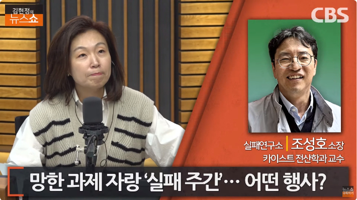 ◇ 김현정> 감사합니다라는 마지막 말씀까지 전해주신 카이스트 실패 연구소장 전산학과 교수세요. 조성호 소장이었습니다.