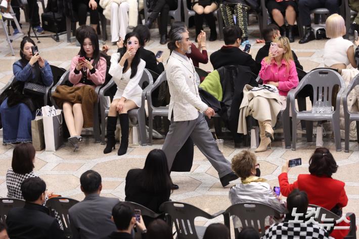 'K-365 패션쇼 in 김포공항'이 28일 오후 서울 강서구 김포공항 국제선 대합실에서 열린 가운데 모델들이 의상을 선보이고 있다. 이번 행사는 김포와 하네다 노선 20주년을 기념하기 위해 마련됐다.