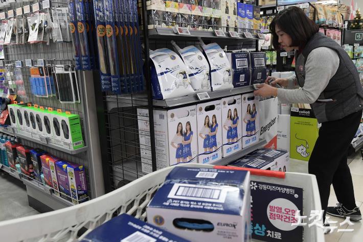 6일 서울 송파구 롯데마트 월드타워점에서 직원이 요소수를 진열하고 있다. 중국 통관이 한국에 대한 차량용 요소 수출을 지연시키는 가운데 비료 원료인 요소의 주요 수출국인 중국이 내년도 수출량을 올해 대비 70% 이상 줄이고, 또 내년 1분기까지 수출을 전면 제한하기로 한 것으로 전해져 수급 불안이 커지고 있다.