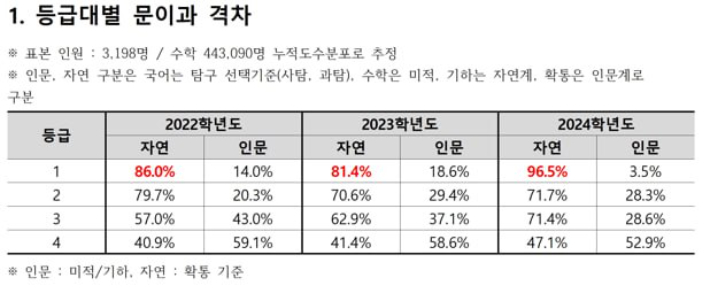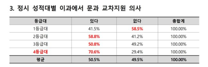 ◇ 김현정> 제가 2023년도 자료는 없고 2022년 자료를 봤는데 서울대 문과대 합격생의 절반이 원래 이과 지망이었다. 서강대 문과대 합격생의 80%가 원래 이과 준비생이었고 경희대는 문과 60%가 이과 지망이었죠. 문제는 붙어놓고 이 학생들 중에 상당수가 이과 가려고 다시 재수를 한다, 그런 분위기라면서요.
