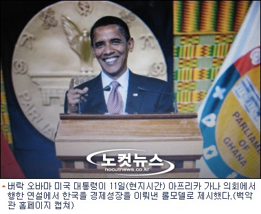 11일(현지시간) 대통령 취임 이후 처음으로 아프리카 가나를 방문한 오바마는 가나 의회 연설에서 아프리카 국가들은 그동안 많은 진보와 성장을 이뤄냈지만 여전히 기대에 부응하지 못하는 나라들이 많다면서 한국을 성공사례로 재차 언급했다.