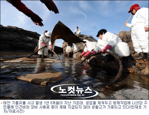 서해안 유류 유출 사고가 발생한 지 1년 6개월이 지났지만 피해 지역주민들에 대한 일부 방제비와 장비 사용료 등이 아직 지급되지 않아 주민들이 어려움을 겪고 있다.