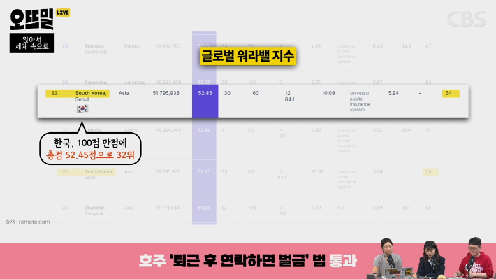 ◆ 박수정> 본인이 직접 신고해야 하니까 어려울 수 있다는 의견도 있고요. 또 한편에서는 이런 의견도 있어요. 이미 호주 정도면 충분히 근로복지가 좋은 나라라는 거죠. 호주가 워라밸 지수에서 떨어지는 나라가 아니거든요. 실제로 전 세계 모든 나라들을 워라밸 기준으로 매년 순위를 매기는 사이트가 있어요. 네덜란드의 인사 전문 회사인데 여기서 매기는 워라밸 그러니까 워크 라이프 밸런스, 삶과 일의 균형에 대한 랭킹을 보시면 호주가 4위예요.