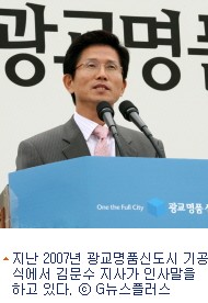 지난 2007년 11월 5일 광교명품신도시 기공식에서 김문수 경기도지사의 일성이다. 김 지사는 이날 ''''훌륭한 과학자, 연구자, 교육자, 회사원, 근로자들이 땀 흘려 연구하고 머리를 짜내고 새로운 것을 만들어 내는 도시가 될 때 진정한 명품도시''''라며 광교신도시에 대한 기대감을 내비쳤다.