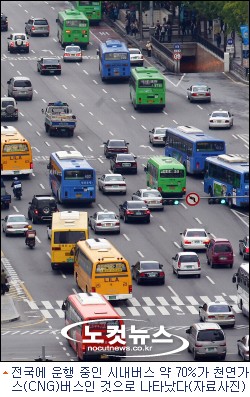 전국에 운행 중인 시내버스의 약 70%가 저공해 친환경 차량인 천연가스(CNG) 버스로 교체됐다.