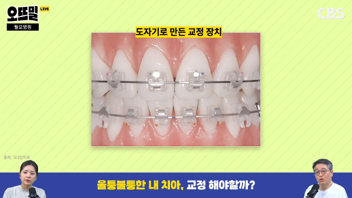 ◇ 채선아> 많은 분들이 거울을 보다가 치아를 보면서 나도 교정을 해야 되나? 이런 생각들 많이 하실 텐데 소위 우리가 '철길'이라고 부르는 이 교정장치가 부의 상징인 적도 있었거든요. 이게 한두 푼이 아니다 보니까 금액이 꽤 비싸요. 그래서 그룹 god의 박준형 씨는 너무 교정이 하고 싶어서 어렸을 때 빵 봉지 묶는 끈 있잖아요. 그걸로 앞니를 묶어서 교정을 했다는 일화를 소개하기도 했거든요. 전문의가 보셨을 땐 어떤가요?