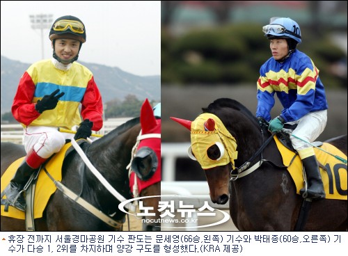 한편, 수득상금(표기금액 중 6.49%가 실질적인 기수의 소득, 조교사는 6.85%)에서는 박태종 기수가 문세영 기수보다 앞서 있어 승수에는 뒤졌지만 실속은 더 챙긴 것으로 나타났다.