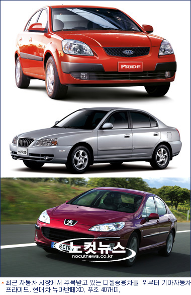 지난달 출시된 기아자동차의 프라이드 1500cc급 디젤모델은 출시 첫달 전체 프라이드 판매대수 2천여대 가운데 37%를 차지하다가 이달 들어서는 52%로 급증했다.
