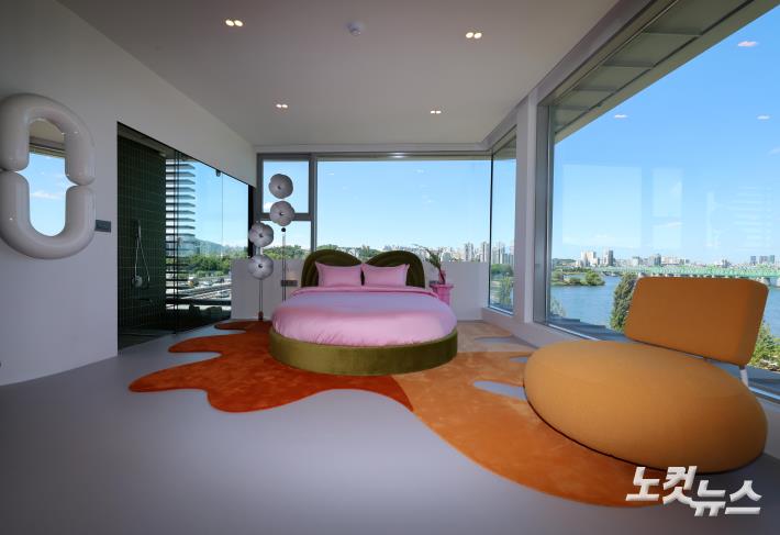 28일 오전 서울 용산구 스카이 스위트 한강브릿지 서울(스카이 스위트). 이날 서울시와 에어비앤비는 코로나19로 사용이 중단된 한강대교 북단 전망카페(직녀카페)를 리모델링해 만든 스카이 스위트를 공개 했다. 스카이 스위트의 정식 개관일은 오는 7월 16일이다.