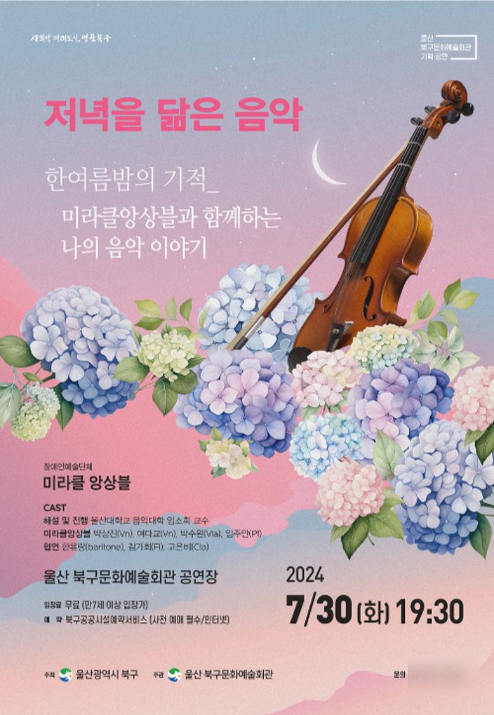 이번 공연에는 발달장애인 예술단체 미라클앙상블이 출연한다. 임소희 울산대학교 음악대학 교수의 진행이 더해진 렉처콘서트 형태이다.