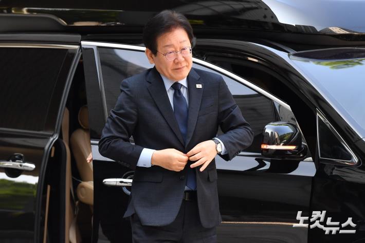 '대장동 배임·성남FC 뇌물' 관련 공판 출석하는 이재명