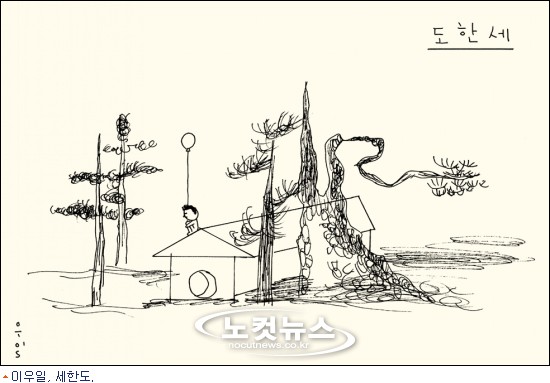 만화가 이우일이 유명하고, 익숙하고, 친숙한 이미지들을 자신의 시각으로 새롭게 그린 그림을 전시한다.
