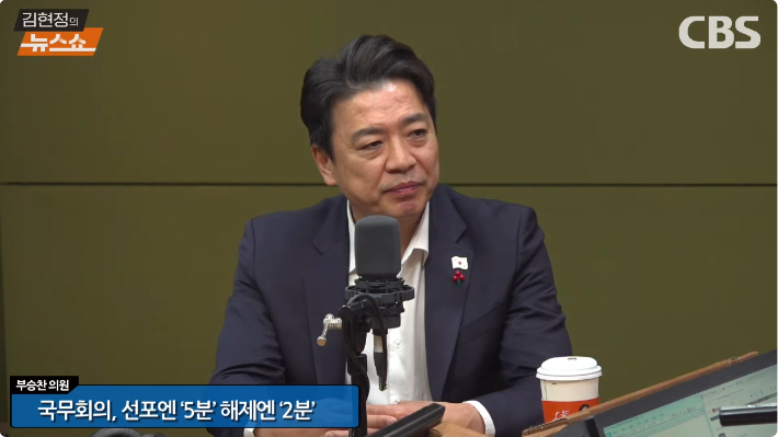 ◆ 부승찬> 예, 왜냐하면 사실은 계엄을 선포하기 위해서는 심의만 하지 의결 사안은 아닙니다. 해제는 의결입니다. 그렇기 때문에 부서들을 하게 되죠. 사인을 하게 되는 건데 심의를 단 몇 분인가요?