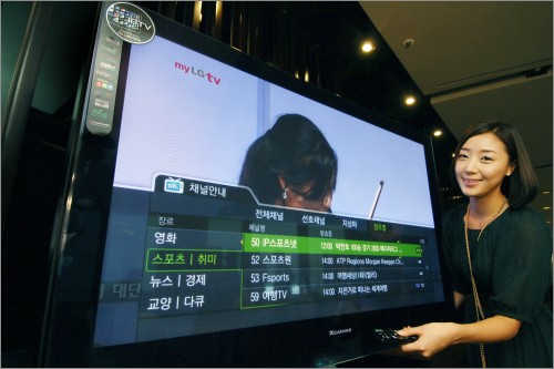 LG데이콤(대표 박종응)과 LG전자(대표 남용)가 국내 최초로 IPTV 기능이 TV 내부에 일체형으로 내장된 ''myLGtv 일체형 XCANVAS'' 를 지난 달 31일 출시했다.