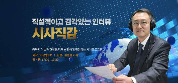 ◇ 김종현> 청취자 여러분 안녕하십니까 시사직감 저는 김종현 기자입니다. 새해부터 시사 직감 앵커로 여러분 만나게 됐습니다. 어제 첫 인사드렸고 오늘이 이틀째입니다. 충북의 이슈와 현안을 직설적이고 감각 있는 인터뷰로 더욱 선명하게 전달해 나가도록 노력하겠다는 약속 여러분께 다시 한 번 드립니다.