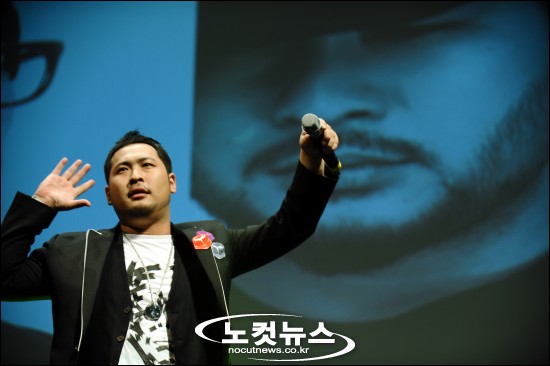 [BestNocut_R]16일 오후 서울 강남 압구정 CGV 극장에서 열린 에픽하이 정규 6집 앨범 [e] 쇼케이스에서 미쓰라가 열정적인 모습을 보이고 있다.