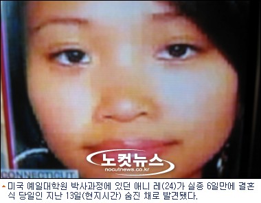 한편 베트남계 이민 2세인 애니 레는 지난 8일 실종된 뒤 결혼식 당일인 13일 대학 실험실 건물 벽장에서 사체로 발견됐다.
