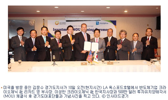 첨단 LED제조시설에 투자키로 한 미국기업 마이어 社는 국내기업 웨이브스퀘어와 협력해 경기도에 진출하기로 했고, 반도체기업인 크라이오제닉 社는 오는 2010년까지 화성시 장안산업단지에 반도체 및 LCD 특수가스용 초저온 펌프 및 기화기 관련 제조시설을 마련키로 했다.