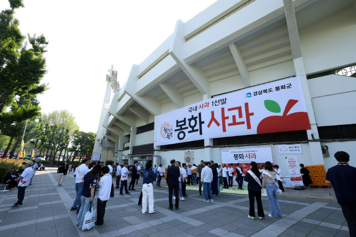 프로야구 두산, 봉화군 브랜드 데이 행사…사과, 한우 선물 증정