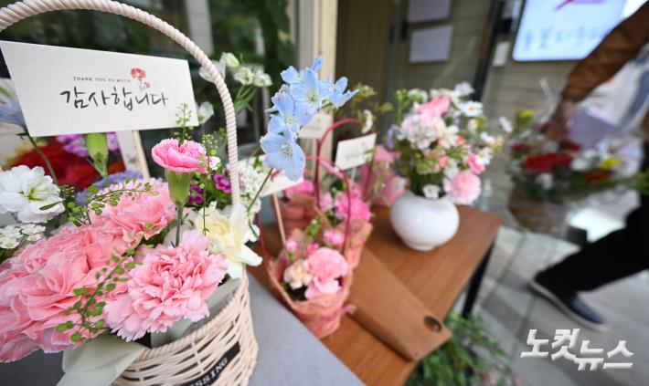 어버이날인 8일 서울 종로구의 한 꽃집에 카네이션 화분이 놓여 있다.