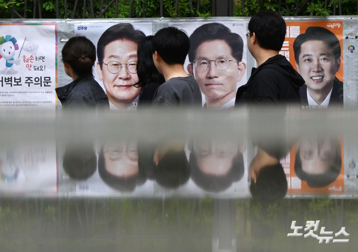 15일 오전 서울 종로구 예술가의집 담장에 제21대 대통령선거 선거벽보가 부착돼 있다. 선거벽보는 이날부터 전국 8만2900여 곳에 첩부된다.
