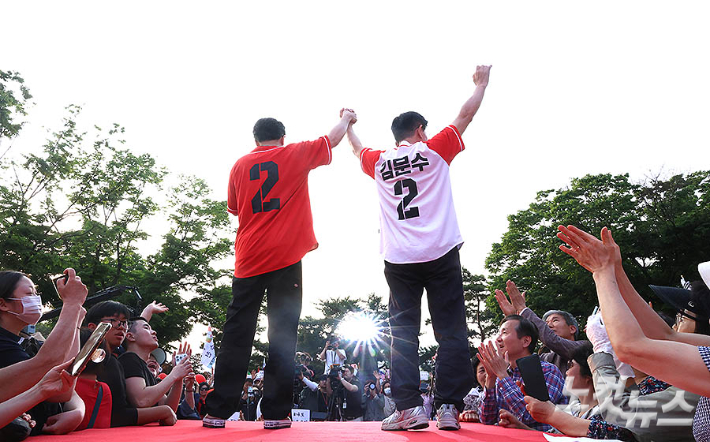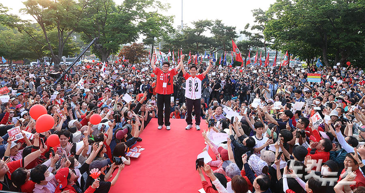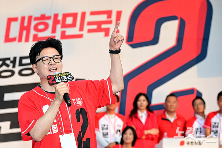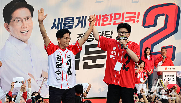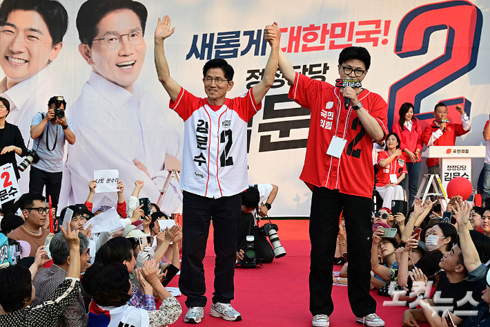 김문수 손잡은 한동훈…첫 합동유세[노컷네컷]