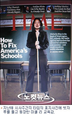 WP는 또 지난해 시사주간지 타임이 게재한 ''빗자루''를 들고 있는 미셸 리 교육감의 표지사진은 그녀의 개혁을 상징적으로 보여주는 것이라고 전했다.