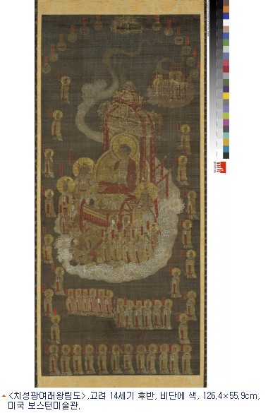 미국 보스턴미술관이 소장하고 있는 <치성광여래왕림도>는 중국 민간신앙인 도교의 칠성신앙을 불교에서 수용하여 북극성을 여래로 인격화한 것이다. 치성광여래도는 조선시대 불화로는 많이 남아 있다. 하지만 이번 전시에 출품된 치성광여래도는 고려불화 중에서도 그리 많지 않은 예로 주목받아 온 것이다.
