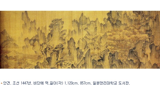 일본의 덴리대학교 도서관이 소장하고 있는 안견의 <몽유도원도>도 이번 기회에볼 수 있다. <몽유도원도>는 시 ·서 ·화의 세가지 예술이 종합적으로 구현된 작품이다. 이 작품에는 최고의 서예가였던 안평대군의 요청을 받아 화가 안견이 그린 그림에 신숙주, 김종서, 박팽년 등 당시의 대표적 문인들의 시문과 글씨가 함께 모여 있다.제작연도(1447년)를 알 수 있는 가장 오래된 산수화라는 점도 중요하다. <몽유도원도>는 안평의 글에서도 보여주듯 도연명의 ''도화원기''에 그 사상적 토대를 두어 도가적 이상향을 구현하고 있다. 조선 전기의 지배이념이었던 성리학적 숭유정책 아래에는 개인적 사유의 자유로움을 중시하는 도가사상이 뿌리내리고 있음을 확인할 수 있다.