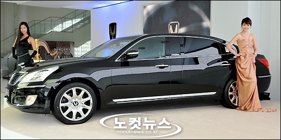 29일 오전 서울 대치동 예술문화 전시공간 크링에서 열린 현대자동차의 ''에쿠스 리무진'' 신차발표회에서 모델들이 신차와 함께 포즈를 취하고 있다.