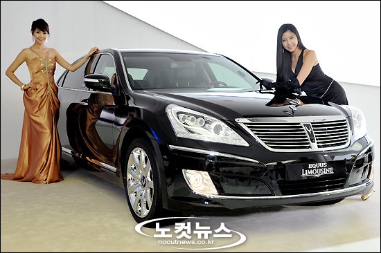 29일 오전 서울 대치동 예술문화 전시공간 크링에서 열린 현대자동차의 ''에쿠스 리무진'' 신차발표회에서 모델들이 신차와 함께 포즈를 취하고 있다.
