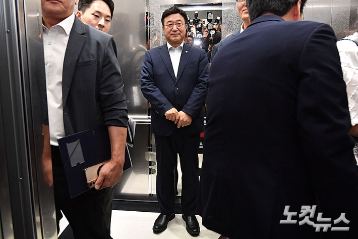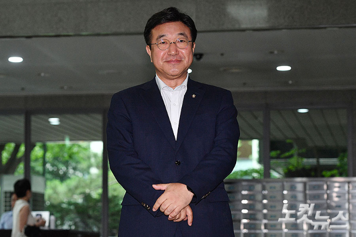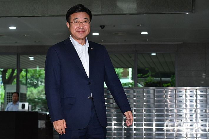 윤호중 행정안전부 장관 후보자가 30일 오전 서울 종로구 광화문플래티넘빌딩에 마련된 인사청문회 준비 사무실로 첫 출근하고 있다.