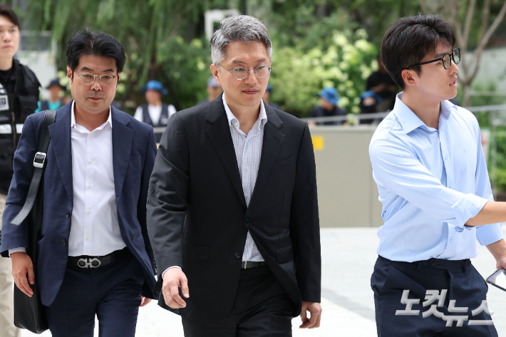 '집사 게이트 의혹' 류긍선 카카오모빌리티 대표 김건희 특검 출석 '집사 게이트 의혹'을 받는 류긍선 카카오모빌리티 대표가 21일 오전 서울 종로구 KT광화문빌딩에 마련된 김건희 여사 관련 의혹을 수사 중인 민중기 특별검사팀 사무실에 출석하고 있다. 집사 게이트 의혹은 김 여사의 집사로 불린 김모씨가 2023년 자신이 설립에 관여한 렌터카 업체 IMS가 부실기업임에도 김 여사와의 관계를 토대로 카카오모빌리티 등으로부터 180억여원을 부정하게 투자받았다는 의혹이다. 류영주 기자