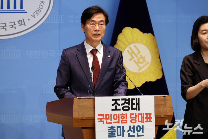 "정통보수 가치 재건하겠다"…조경태, 당대표 출마 선언 국민의힘 조경태 의원이 21일 서울 여의도 국회 소통관에서 전당대회 당대표 출마선언을 하고 있다. 조 의원은 "정통보수의 가치를 재건하는 데 앞장서겠다. 과감한 인적 청산만이 국민의힘이 다시 사는 길"이라며 "당과 보수진영을 위기에 빠뜨리고 여전히 기득권을 움켜쥐고 있는 구태 세력들을 읍참마속 하지 않으면 우리 당과 보수의 미래는 없다"고 했다. 윤창원 기자