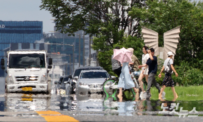 절기상 가장 덥다는 '대서'인 22일 서울 여의대로에 지열로 인한 아지랑이가 피어오르고 있다. 박종민 기자